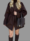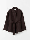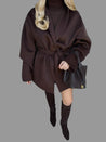 Benthe | Donkerbruine wollen mantel met ceintuur