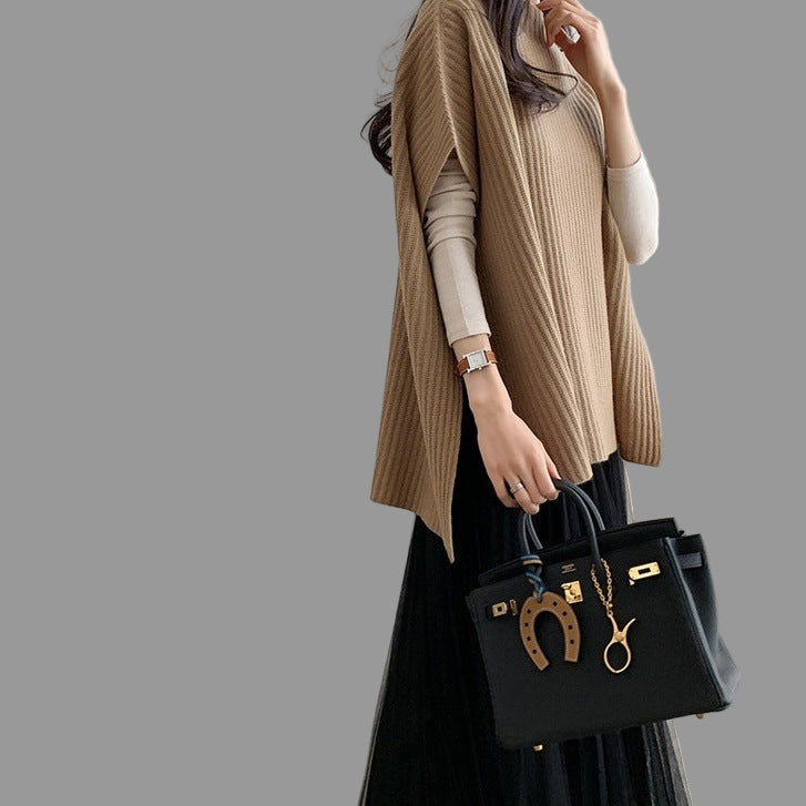 Modieuze en comfortabele gebreide trui, ontworpen in een eigentijdse Koreaanse stijl. Deze bovenkleding vergroot de elegantie van een cape met het comfort van een trui, ideaal voor de herfst- en wintermaanden. De losse pasvorm met vleermuismouwen biedt een moderne uitstraling en zorgt voor optimale bewegingsvrijheid.
