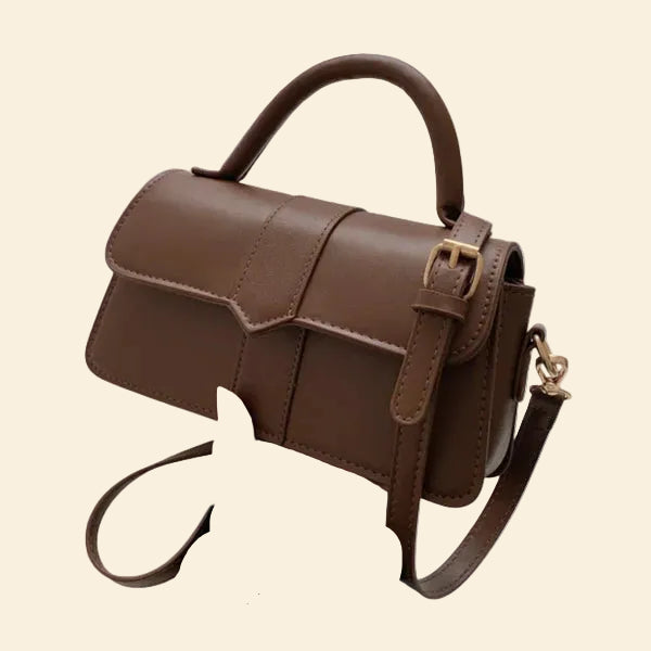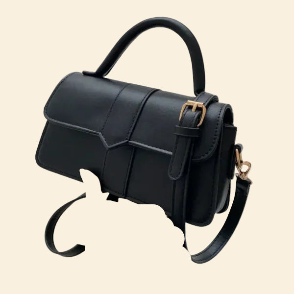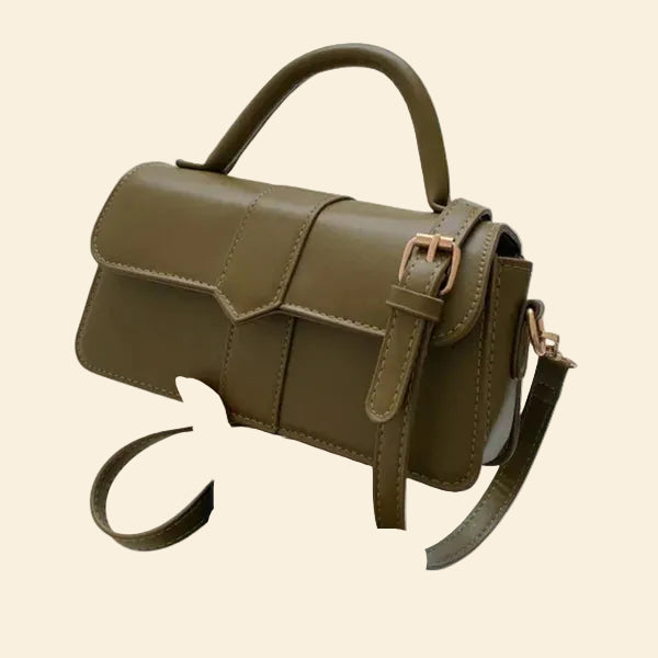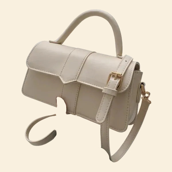 Deze stijlvolle handtas heeft een strak en modern ontwerp met een gestructureerde vorm. De tas is afgewerkt met subtiele stiklijnen die het ontwerp een elegante uitstraling geven. Aan de bovenkant bevindt zich een stevige handgreep, terwijl de verstelbare schouderriem zorgt voor extra draaggemak. De goudkleurige details, zoals de gesp en metalen accenten, geven de tas een luxe afwerking. Dankzij het compacte formaat is de tas perfect voor dagelijks gebruik, terwijl hij toch voldoende ruimte biedt voor al je essentials.