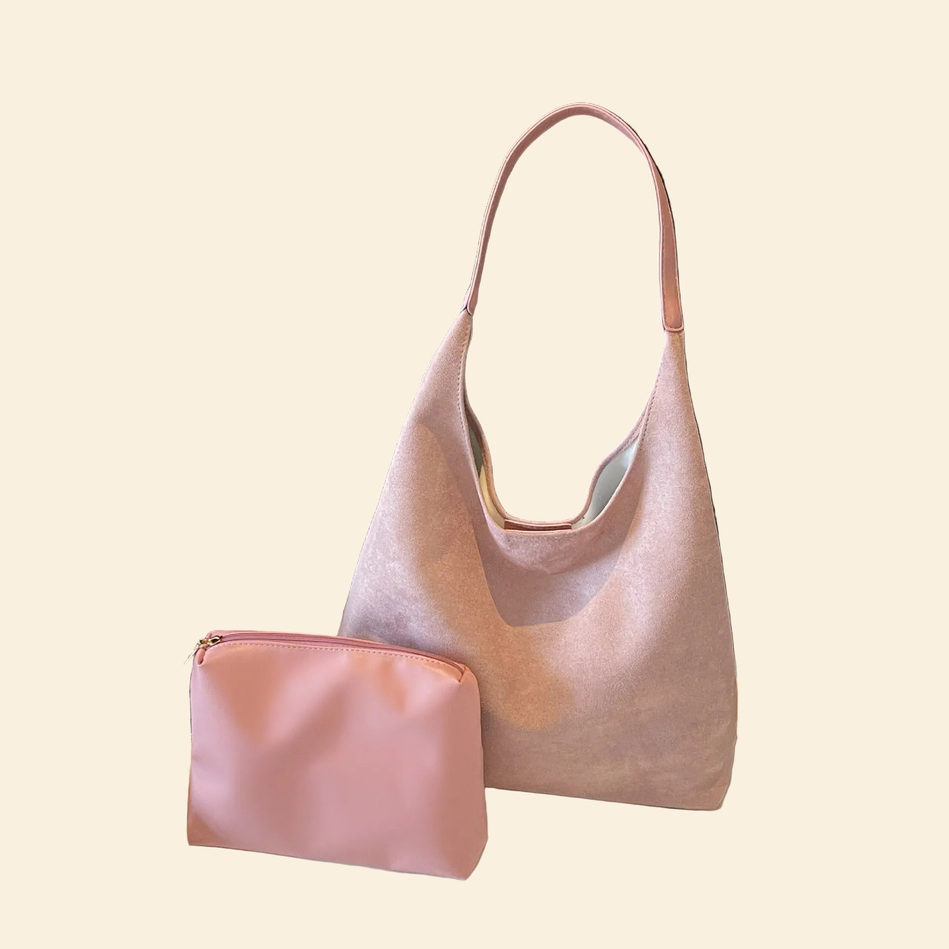 Deze stijlvolle schoudertas heeft een zachte, soepelvallende vorm en is gemaakt van een materiaal met een fluweelachtige structuur, wat zorgt voor een luxe en moderne uitstraling. Het minimalistische ontwerp bevat één comfortabele schouderband en een ruim hoofdvak, ideaal voor dagelijks gebruik.