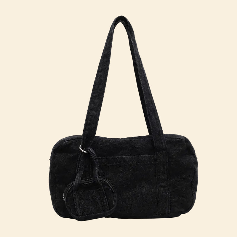 Deze denim bowlingtas is een perfecte mix van functionaliteit en vintage-geïnspireerde casual mode. Het is een ideale tas voor dagelijks gebruik, of je nu naar college gaat, boodschappen doet of een weekendje weg bent. De kleurstelling zorgt ervoor dat hij minder gevoelig is voor vlekken en een stoer, 'effortless chic' gevoel geeft.